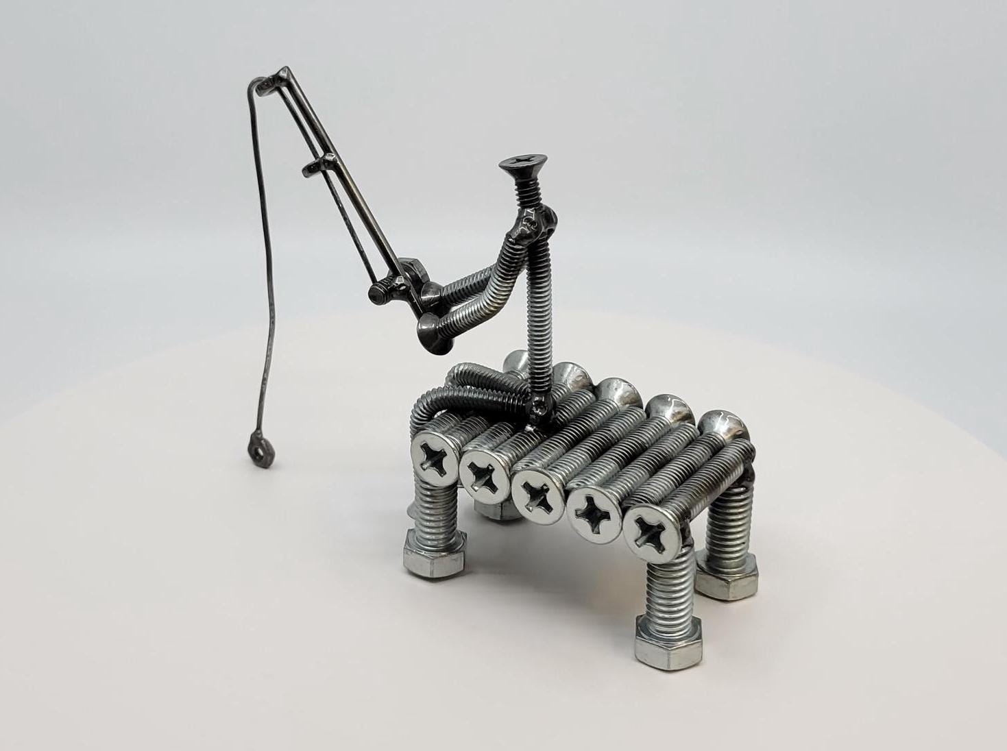 Daydreaming of fishing? Feel like sitting at the end of a dock and wondering when life will get back to normal? Our newest nuts and bolts piece can be a visual aid for those daydreams. Not much more to say that isn't in the photos...it's a fun piece to look at and a cool gift for someone who likes fishing.