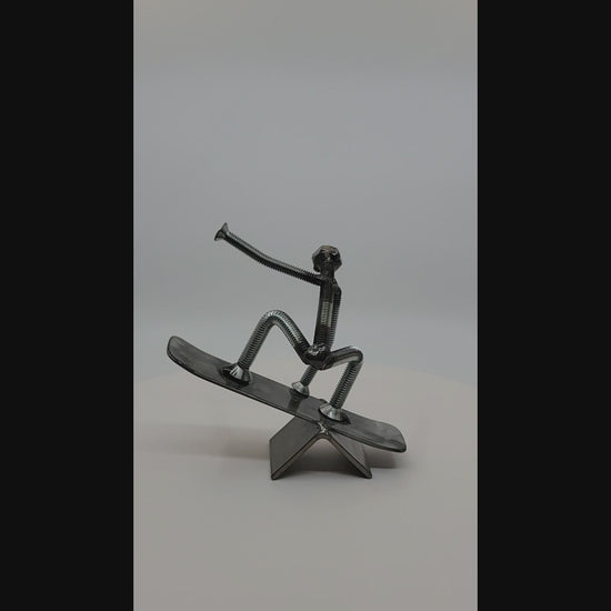 You can't snowboard all the time. Sad, but true. Fortunately, this welded metal nuts and bolts boarder will hold that pose for you while you prepare for the next time you can finally get on the chair lift. A great gift for you or the snowboarder in your life.